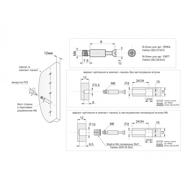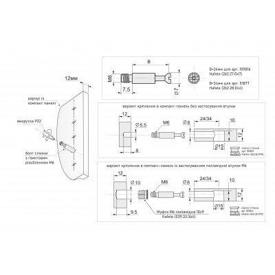Болт стяжки MINIFIX, с резьбой М6, изготовлен из стали.