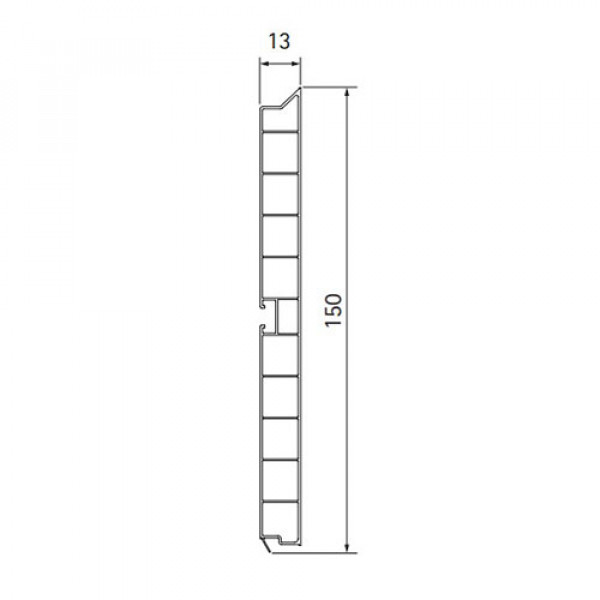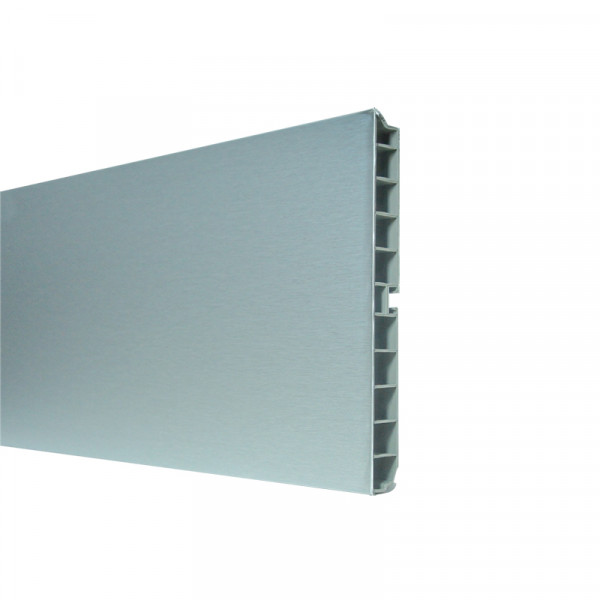 Цоколь ПВХ высотой 150 мм и длиной 4 м со скрытым уплотнителем.
