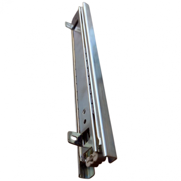 Шариковые направляющие рассчитаны на вес до 30 кг. Направляющие имеют телескопическую структуру и подойдут для любой мебели. Может отцепляться с помощью расцепляющего рычага, с удерживающим предохранителем для фиксации в закрытом положении.