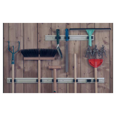 Планка с 3 подвижными держателями для инвентаря с ручками толщиной 23-28 мм.