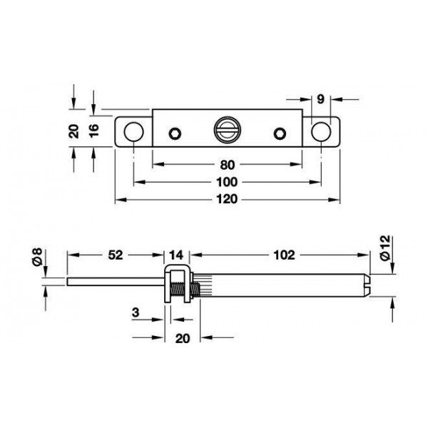 Полицетримач для прихованого монтажу з кріпильною пластиною і шкворнем.