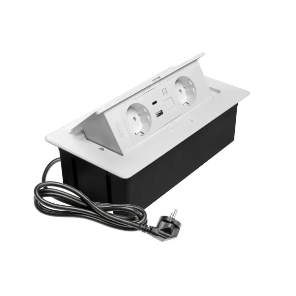 Подовжувач поворотний врізний на 2 розетки + 2 USB А+С + RJ45.